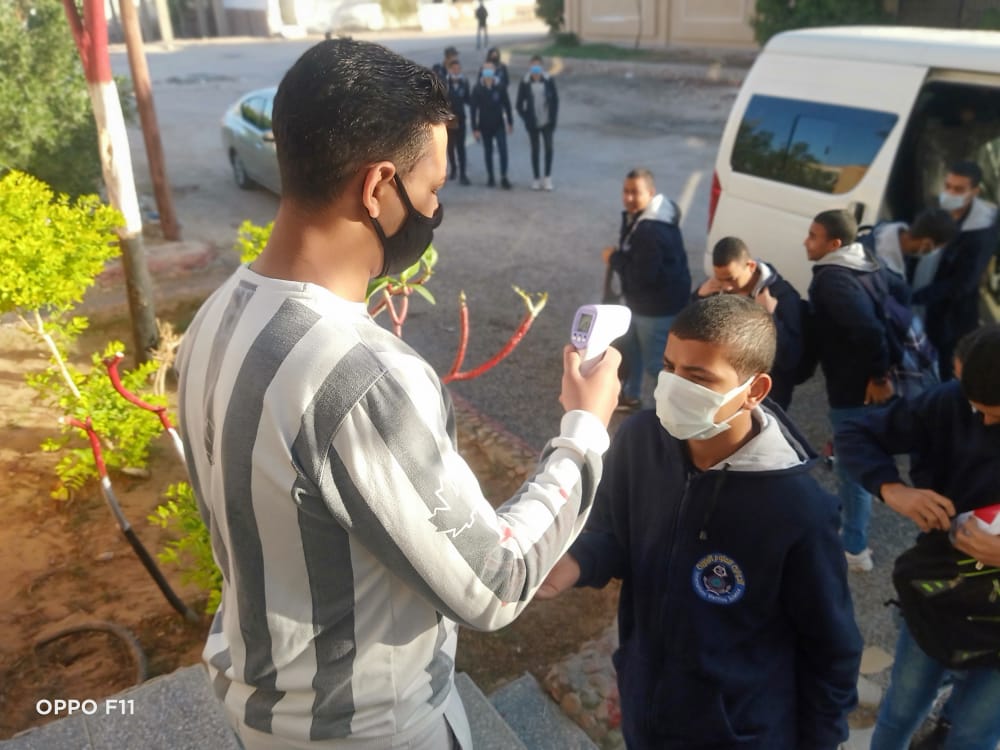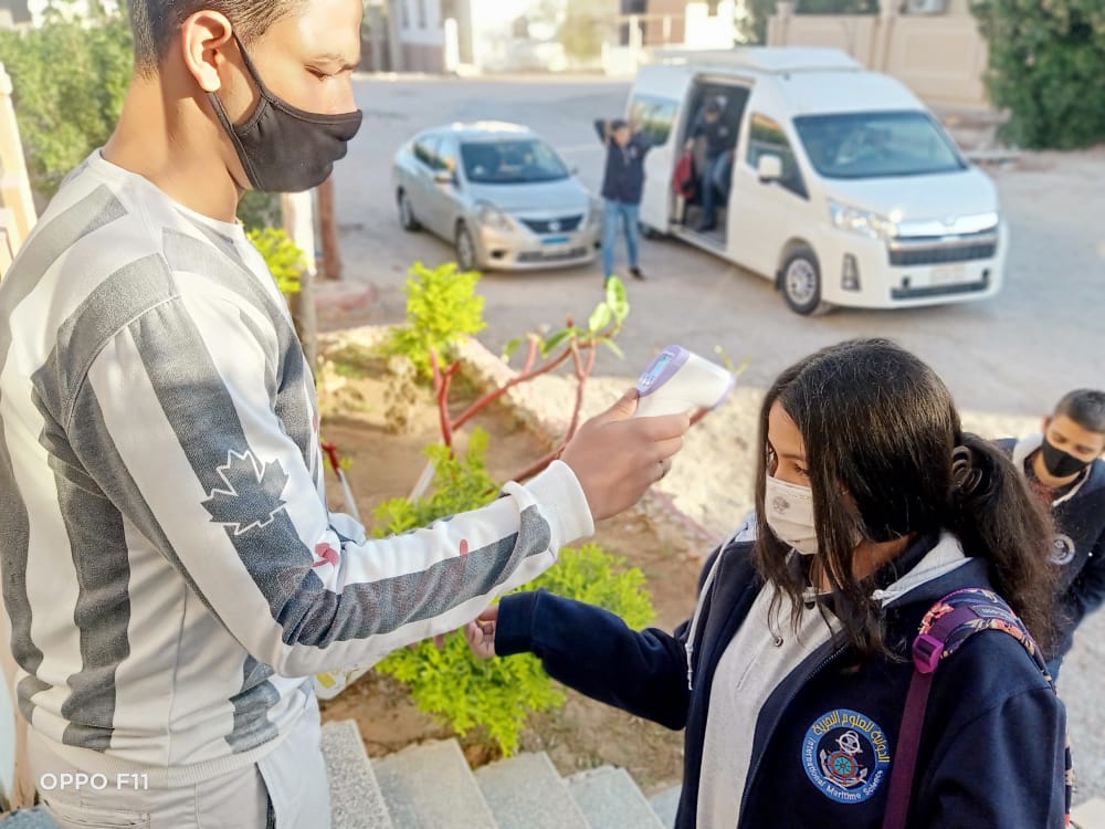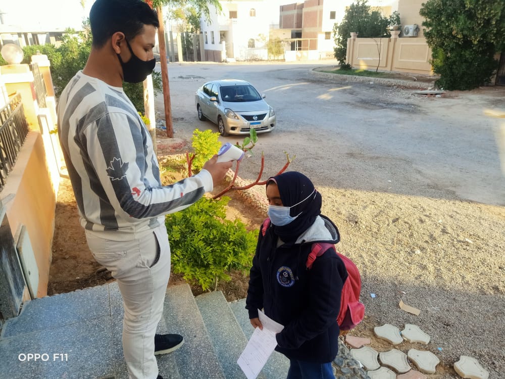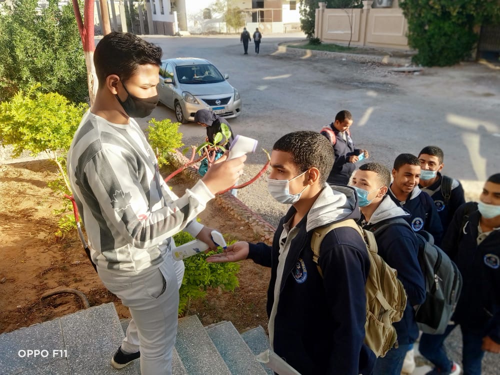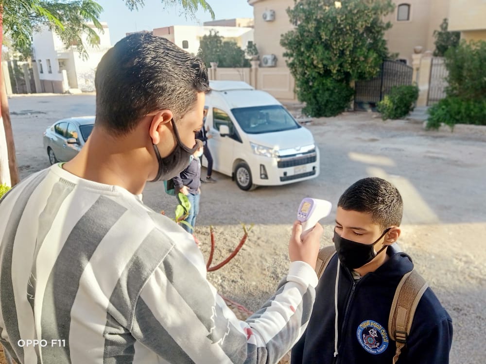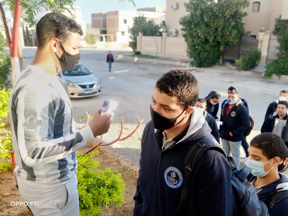 من ضمن إجراءات تنظيم الدخول والخروج من الاكاديمية؛ يتم عمل فرز حراري للتأكد من خلو الطلاب والمدرسين وفريق العمل المعاون بالمدرسة، والزائرين من ارتفاع درجة حرارة الجسم،