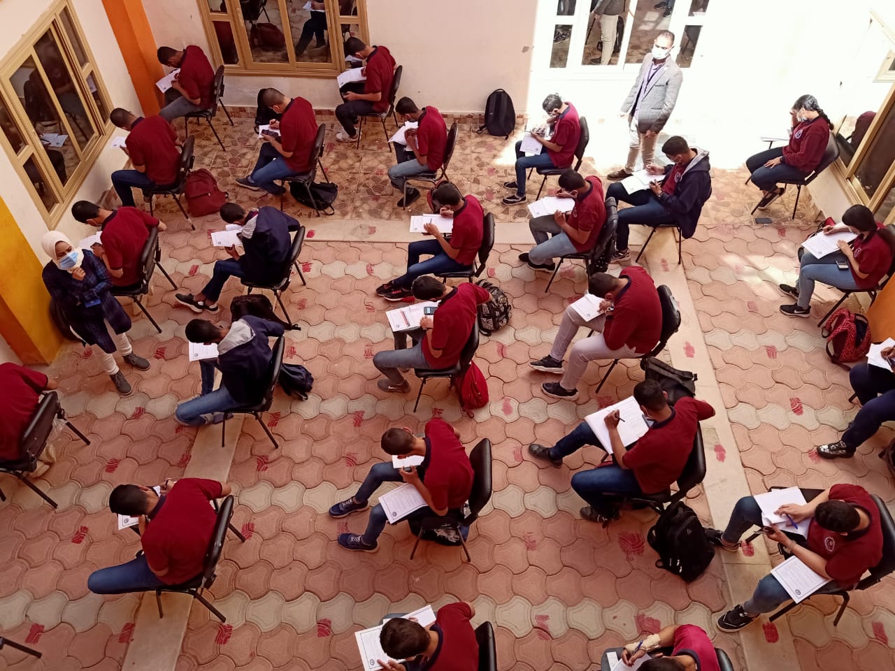 وقد تمت فاعليات اليوم الأول بالامتحانات بكل حرص والتزاماً بالإجراءات الاحترازية والتباعد بين الطلاب حرصا علي سلامتهم